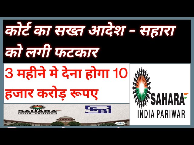यानी कि तीन महीने का कोर्ट ने यह आदेश पारित किया है सहारा को समय दिया है तीन महीने का कि तीन महीने के अंदर आपको हर हालत में सहारा सेबी के रिफंड अकाउंट में 10000 करोड़ रुपए जमा करना है उसको पूरा करना है इससे पहले भी मैंने को बताया था कि इसकी दो कंपनियां सहारा इंडिया रियल एस्टेट और सहारा हाउसिंग इन्वेस्टमेंट कॉरपोरेशन लिमिटेड इसकी जो दो कंपनियां है एक बार फिर से समझ लीजिए कि सहारा इंडिया रियल एस्टेट और सहारा हाउसिंग इन्वेस्टमेंट कॉर्पोरेशन लिमिटेड इसके तहत कोर्ट ने यह आदेश दिया है कि आपकी जो भी संपत्ति है यानी कि सहारा इंडिया के पास इस समय वर्तमान में जो भी संपत्तियां है आपने एमए वैली का नाम सुना होगा इस समय एमए वैली की कीमत 5 लाख करोड़ रुपए है और वर्ष व  प्रॉपर्टी की कीमत एक लाख करोड़ रुपए है तो कोर्ट ने ये आदेश दिया है सहारा को कि आपके संपत्ति के ऊपर किसी भी संपत्ति के ऊपर किसी भी प्रकार का कोई एर्गो या कोई रुकावट नहीं है आप अपनी संपत्ति को बेचकर चाहे वो जिस तरीके से भी बेचे किसी को भी बेचे तीन महीने के अंदर जो है ना अपनी संपत्ति को बेचकर आप जो है ना 10000 करोड़ रुपए सहारा सेबी के अकाउंट में जमा करवाए।